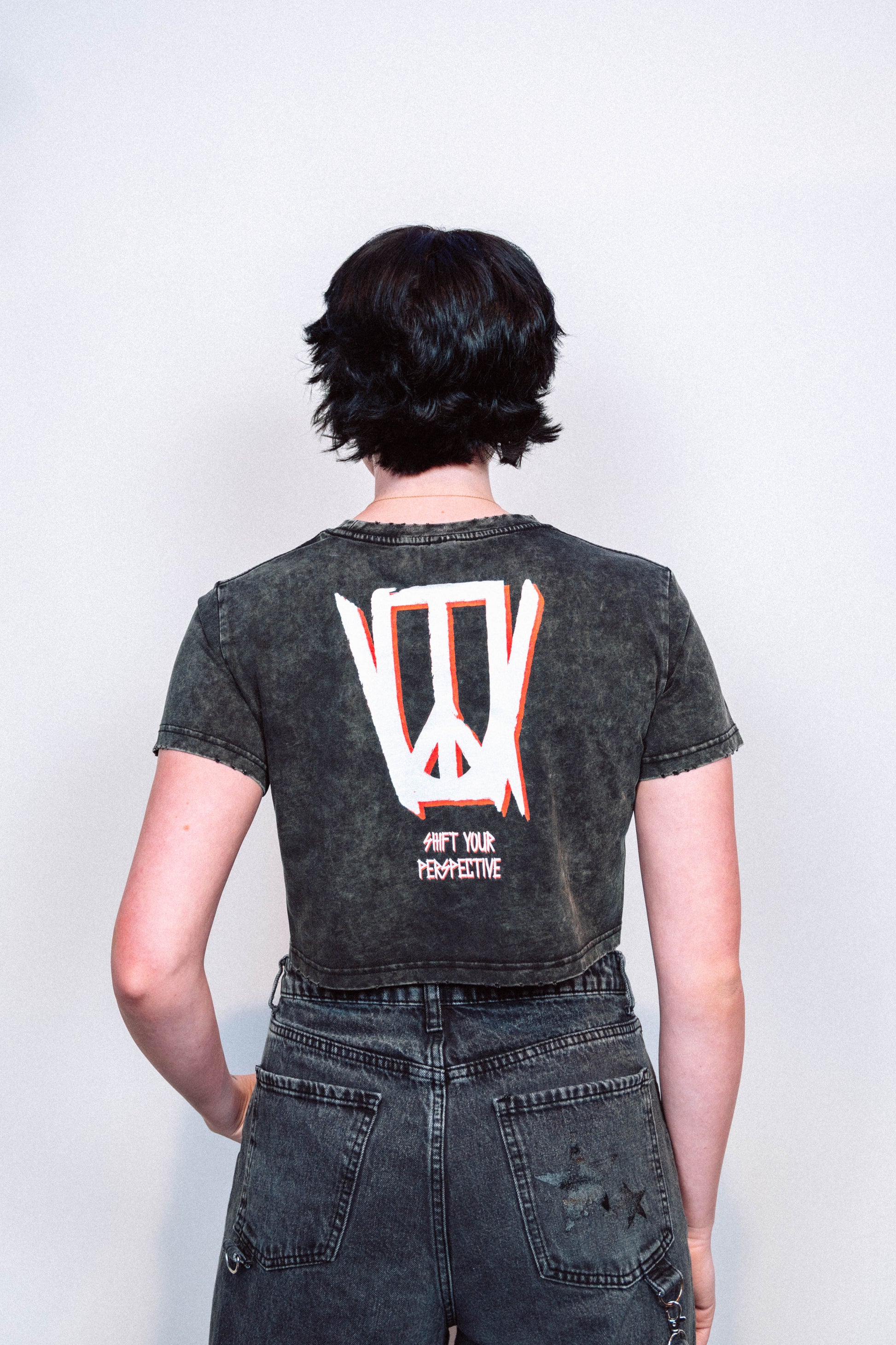 The first womens crop top in our "Always Available" collection. Made from 100% soft cotton fabric, this women's high-quality tee is cropped above the waist. Featuring a distressed neck, sleeve, and bottom hem of the shirt. As well as our beloved snow-wash design featured in other "Genesis" collection items.